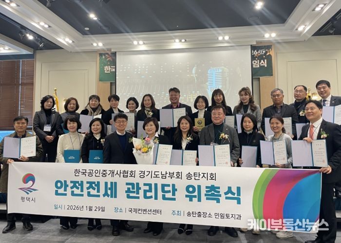 한편, 송탄출장소는 이번 위촉식을 시작으로 지역 공인중개사 네트워크와의 긴밀한 소통을 강화하고, 전세 사기 근절을 위한 실효성 있는 시책을 발굴하여 신뢰받는 부동산 중개 문화를 정착시켜 나갈 계획이다.