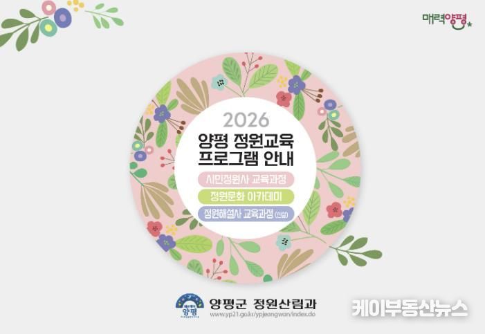 케이부동산뉴스 김교민 기자 | 양평군은 올해 제14회 경기정원문화박람회 개최를 앞두고, 특별 신설 교육과정을 포함한 2026년 정원교육 운영계획을 발표했다. 양평군 정원교육은 △시민정원사 △정원문화아카데미 △정원해설사 등 세 가지 분야로 운영된다.