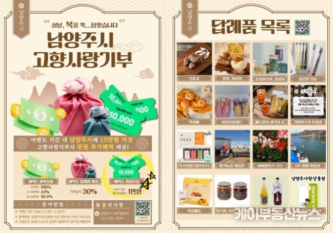 케이부동산뉴스 김교민 기자 | 남양주시가 설 명절을 맞아 고향사랑기부제 활성화를 위해 ‘설맞이 세뱃돈’ 이벤트를 추진한다고 3일 밝혔다.