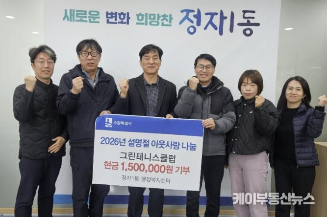 케이부동산뉴스 김교민 기자 | 수원시 장안구 정자1동은 지난 3일, 그린테니스클럽이 설 명절을 맞아 관내 취약계층을 돕기 위한 기부금 150만원을 전달했다고 밝혔다.