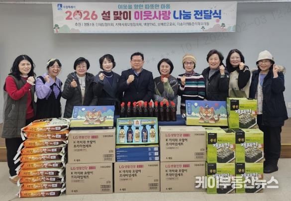 케이부동산뉴스 김교민 기자 | 영통구 영통1동은 지난 3일 영통1동 단체장협의회가 설 명절을 앞두고 관내 저소득 이웃을 위한 ‘설 맞이 이웃사랑 나눔 전달식’을 진행했다고 밝혔다.