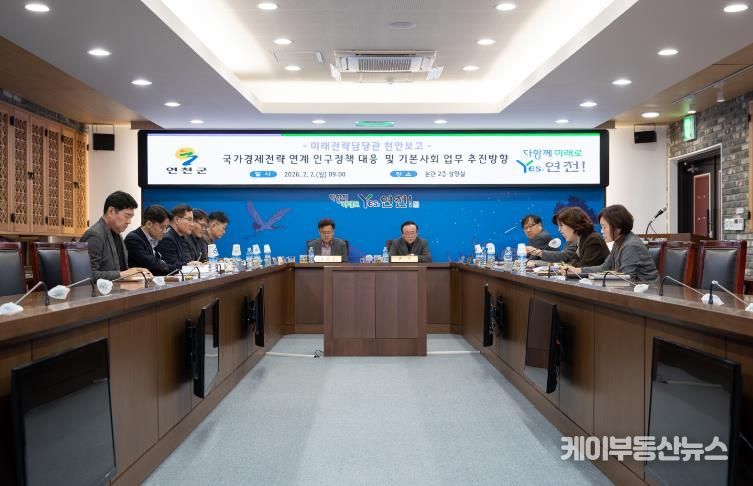 케이부동산뉴스 김교민 기자 | 연천군은 지난 2일 군청 상황실에서 국가 경제성장전략과 연계한 인구정책 대응방안 및 기본사회 업무 추진방향을 논의하는 현안회의를 개최했다.
