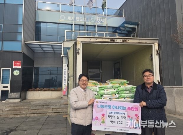 케이부동산뉴스 김교민 기자 | 송탄평애미화사는 설 명절을 맞아 4일 평택시 송탄동 행정복지센터에 쌀(10㎏) 30포를 기부하며 지역 내 취약계층을 위한 따뜻한 나눔을 실천했다.