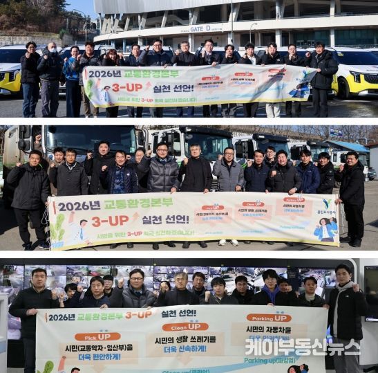 케이부동산뉴스 김교민 기자 | 용인도시공사 교통환경본부는 2026년 시민에게 더 나은 서비스를 제공하기 위해 지난 3일‘3-UP(쓰리업) 실천 선언식’을 개최하고, 교통·환경·주차 분야 전반에서 시민이 체감할 수 있는 서비스 수준을 한 단계 끌어올리겠다고 밝혔다.