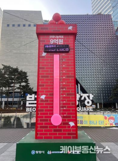 케이부동산뉴스 김교민 기자 | 안양시는 범계역 광장에 설치된 ‘사랑의 온도탑’이 올해도 100도를 넘겼다고 4일 밝혔다. 지난해 12월 1일부터 올해 1월 31일까지 진행된 모금 결과, 시민과 기업의 참여로 온도는 최종 101도를 기록했다.
