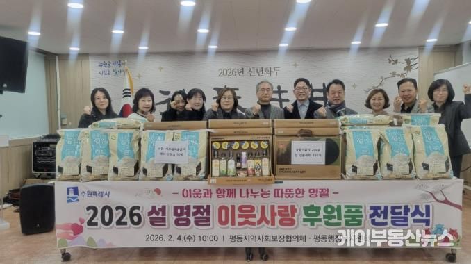케이부동산뉴스 김교민 기자 | 수원시 권선구 평동은 지난 4일, 설 명절을 앞두고 소외된 이웃을 돕기 위한 ‘2026년 설 맞이 사랑의 물품 전달식’을 가졌다.