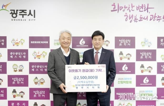 케이부동산뉴스 김교민 기자 | 경기도자동차전문정비사업조합 광주시지회는 지난 4일 지역 내 저소득 가정을 돕기 위해 성금 250만 원을 광주시에 기탁했다.