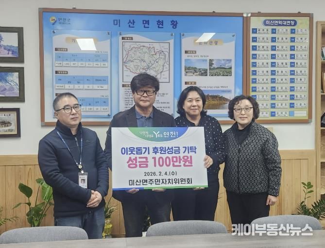 케이부동산뉴스 김교민 기자 | 연천군 미산면주민자치위원회는 지난 4일 지역 내 어려운 이웃을 돕기 위해 성금 100만원을 미산면지역사회보장협의체에 기탁했다.