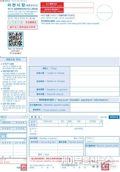 이번에 발송하는 세외수입체납고지서는 외국인이 이해하기 쉬운 다국어 안내 문구와 큐알코드가 함께 제공되며 큐알코드를 통해 8개 국어로 납부 방법 등을 알기 쉽게 설명했다. 이를 통해 체납 사실에 대한 오해를 줄이고, 불필요한 체납 장기화를 예방할 수 있을 것으로 기대된다.