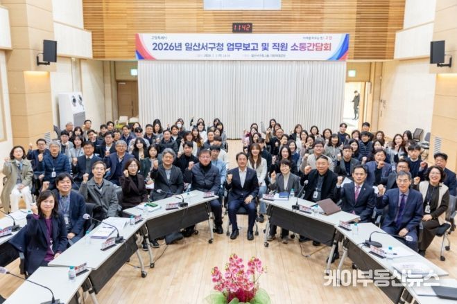 케이부동산뉴스 김교민 기자 | 고양특례시 일산서구는 지난 5일 일산서구청 가와지대강당에서 ‘2026년 일산서구 업무보고 및 직원 소통간담회’를 개최했다고 밝혔다.