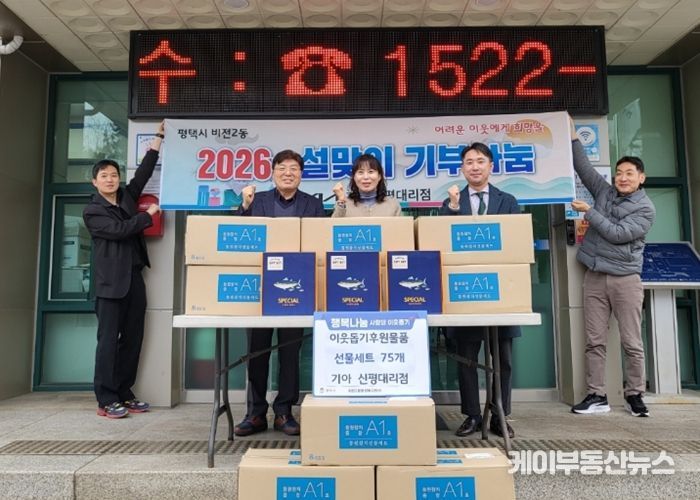 케이부동산뉴스 김교민 기자 | 기아 신평대리점은 10일 설 명절을 맞아 평택시 비전2동 행정복지센터에 지역 내 취약계층을 위한 명절 선물 세트 75박스를 기부했다.