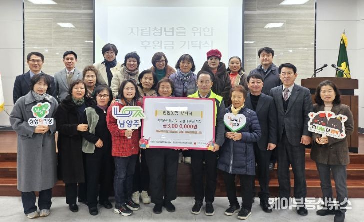 케이부동산뉴스 김교민 기자 | 남양주시는 10일 진접농협부녀회가 관내 자립 준비 청년을 위한 후원금 300만 원을 진접읍 지역사회보장협의체에 전달했다고 밝혔다.