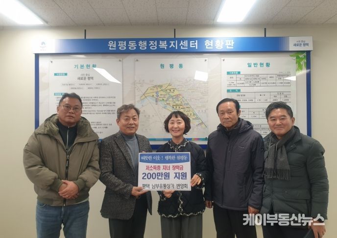 케이부동산뉴스 김교민 기자 | 평택 남부유통상가 번영회는 지난 10일 지역사회 나눔 실천의 하나로 취약계층 학생들을 위한 장학금 2백만 원을 지원했다고 밝혔다.