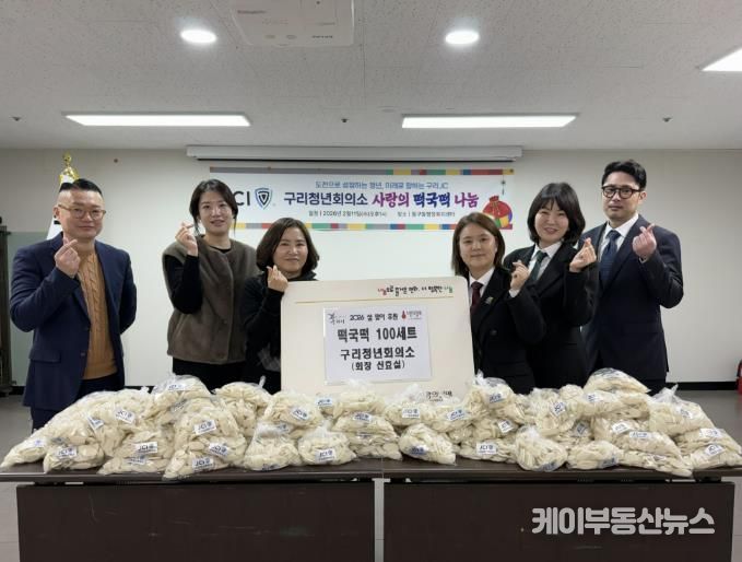 케이부동산뉴스 김교민 기자 | 구리시 동구동 행정복지센터는 설 명절을 맞아 지난 11일 동구동 행정복지센터 대회의실에서 구리청년회의소로부터 떡국떡(600g) 100세트를 전달받았다.