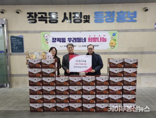 케이부동산뉴스 김교민 기자 | ㈜한서식품은 설 명절을 맞아 지역 내 어려운 이웃을 위해 한서김치 5kg 40상자를 장곡동 행정복지센터에 전달했다.
