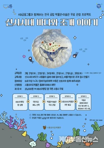 케이부동산뉴스 김교민 기자 | 시흥시는 겨울방학을 맞아 KB금융그룹의 ‘전국 공립 박물관ㆍ미술관 무료 관람 프로젝트’와 연계한 시민 참여형 교육ㆍ체험프로그램 ‘선사시대 바다와 조개 이야기’를 시흥오이도박물관에서 운영한다.
