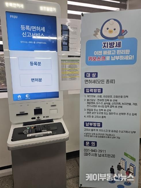케이부동산뉴스 김교민 기자 | 파주시는 납세자가 여러 기관을 오가야 했던 기존 세금 신고 절차의 불편을 해소하고자 파주시청 민원동과 파주등기소에 무인민원발급기 운영을 개시한다.