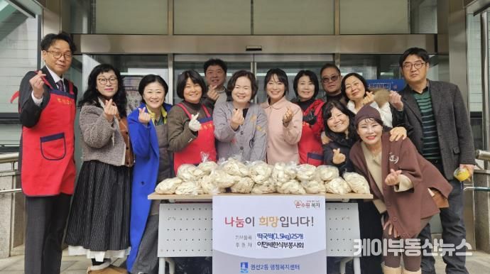케이부동산뉴스 김교민 기자 | 수원시 권선구 권선2동 행정복지센터는 지난 13일, 설 명절을 앞두고 ‘이만세 한식부 봉사회’로부터 떡국떡(1.5kg) 25세트를 기탁받았다고 밝혔다.