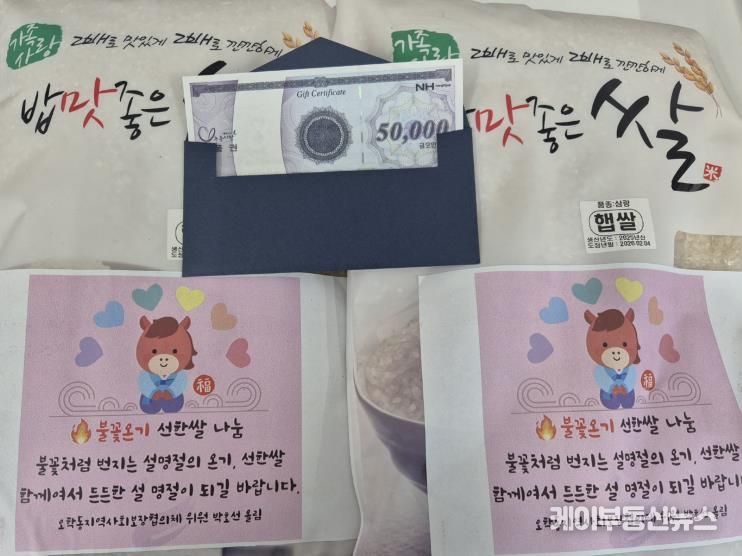 케이부동산뉴스 김교민 기자 | 오학동행정복지센터는 설 명절을 맞아 경제적 어려움을 겪고 있는 관내 한부모 가정과 복지사각지대 가구를 대상으로 ‘불꽃온기 선한 쌀·상품권 나눔 사업’을 진행했다고 밝혔다. 이번 나눔 사업은 명절을 앞두고 취약계층의 경제적 부담을 덜어주고, 지역사회에 따뜻한 온기를 전하기 위해 마련됐다.