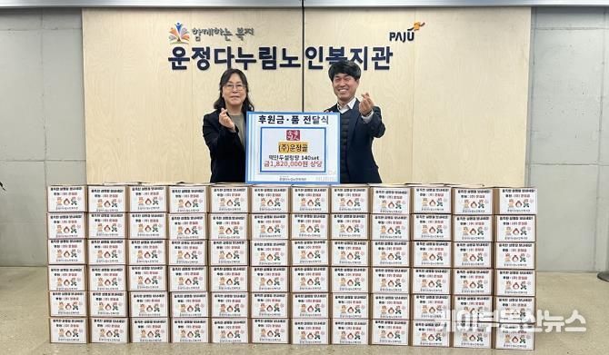 ㈜운정골은 떡만두 설렁탕 140개(182만 원 상당)를 정성껏 준비해 후원했으며, 운정다누림노인복지관은 직접 각 가정을 방문해 물품을 전달하고 어르신들의 안부를 살폈다.