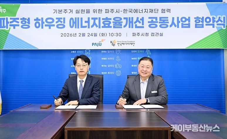케이부동산뉴스 김교민 기자 | 파주시는 지난 24일 한국에너지재단과 ‘기본주거 실현을 위한 파주형 하우징 에너지효율개선 공동사업’업무협약을 체결했다.