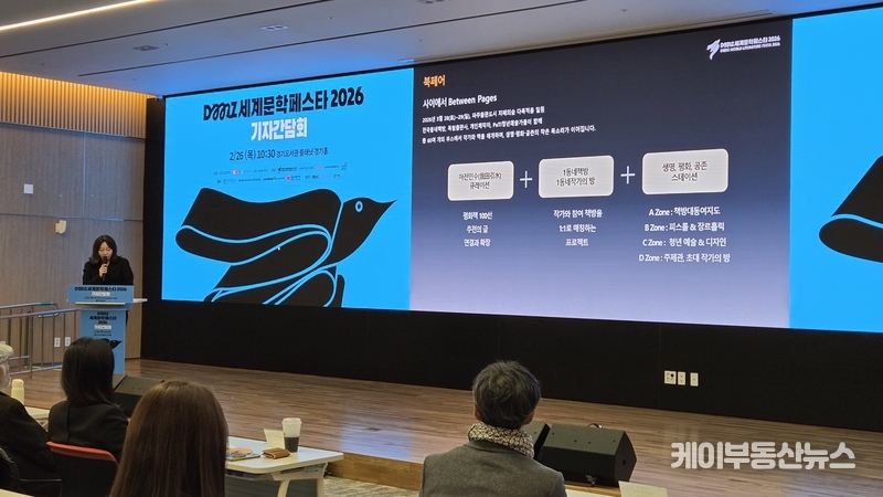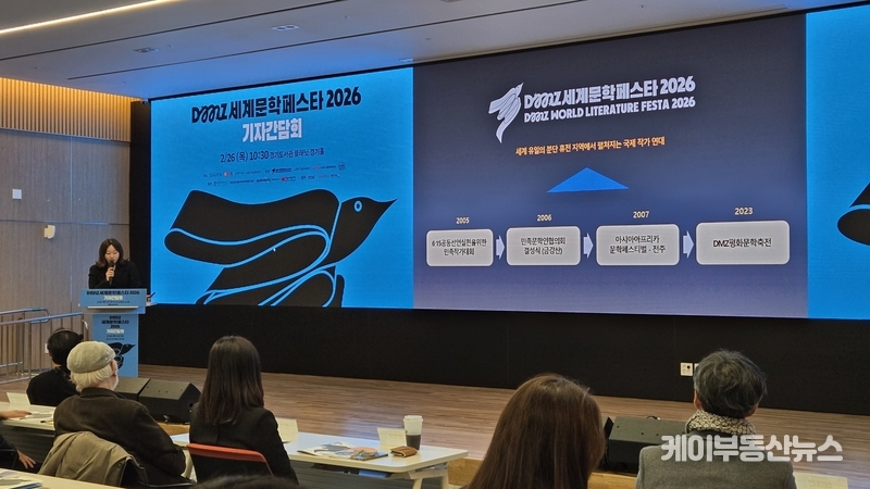 케이부동산뉴스 김교민 기자 | 세계 유일의 분단 휴전지 DMZ에서 전쟁과 혐오의 시대를 넘어서는 ‘문학적 연대’가 펼쳐진다. 경기도와 경기문화재단, 한국작가회의는 오는 3월 27일부터 29일까지 3일간 DMZ 캠프그리브스와 파주출판도시 일대에서 ‘DMZ 세계문학 페스타 2026(DMZ World Literature Festa, DWLF)’를 개최한다고 밝혔다.