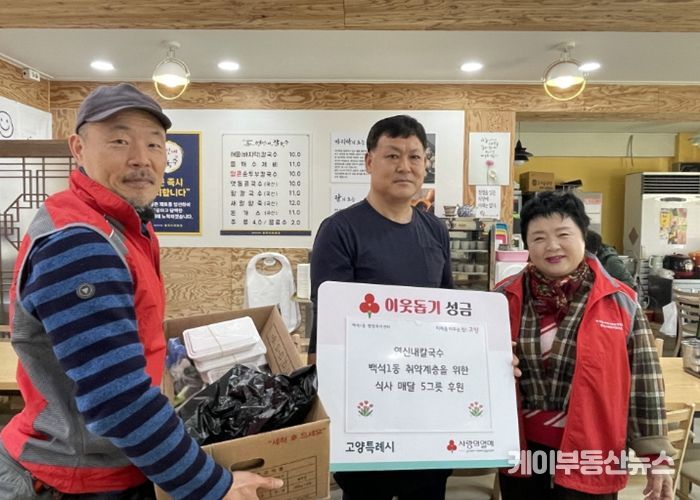 케이부동산뉴스 김교민 기자 | 고양특례시 일산동구 백석1동 관내 음식점인 연신내칼국수가 매월 칼국수 5그릇을 백석1동 저소득 가구에게 정기 후원하기로 했다.