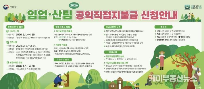 케이부동산뉴스 김교민 기자 | 동두천시는 2026년 임업·산림 공익직접지불금 신청 접수를 3월 1일부터 4월 30일까지 실시한다.