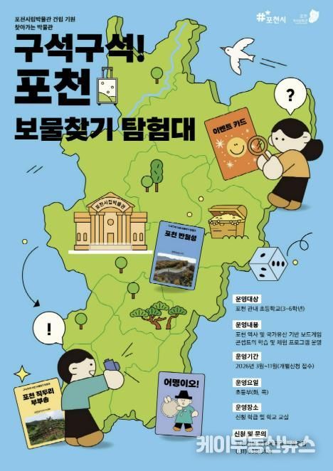 케이부동산뉴스 김교민 기자 | 포천시 포천역사문화관은 포천시립박물관 건립에 대한 시민 공감대를 높이고 지역 역사 교육을 활성화하기 위해 초등학생 대상 교육프로그램 ‘구석구석! 포천 보물찾기 탐험대’를 운영하고 참여 학교를 모집한다.