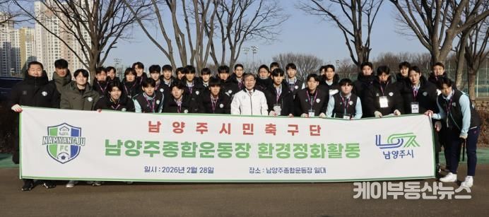 케이부동산뉴스 김교민 기자 | 남양주시는 지난 2월 28일 남양주시민축구단이 남양주종합운동장 일대에서 환경정화 활동을 실시하며 2026 시즌 개막을 앞둔 힘찬 출발을 알렸다고 5일 밝혔다.