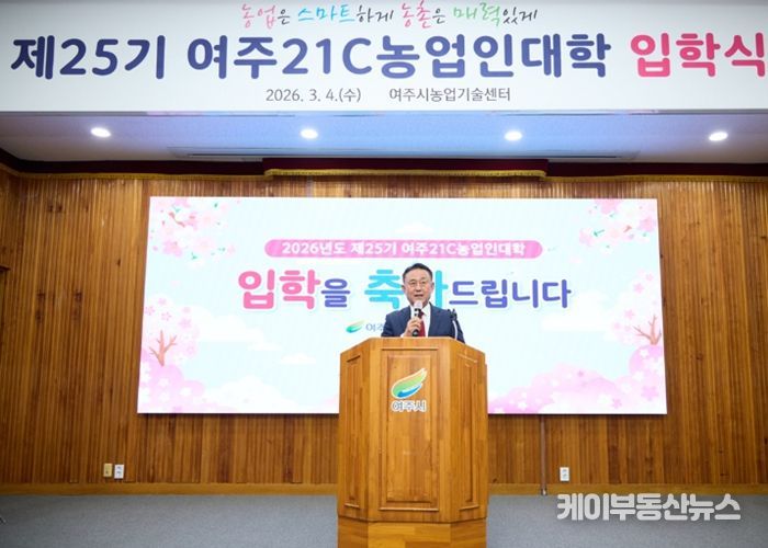 케이부동산뉴스 김교민 기자 | 여주시에서는 지난 3월 4일 입학생과 내빈 등 110여명이 참석한 가운데 농업기술센터 대회의실에서 2026년 제25기 여주21C농업인대학 입학식을 개최하고 지역 농업을 이끌어갈 전문 농업인 101명의 힘찬 출발을 알렸다.