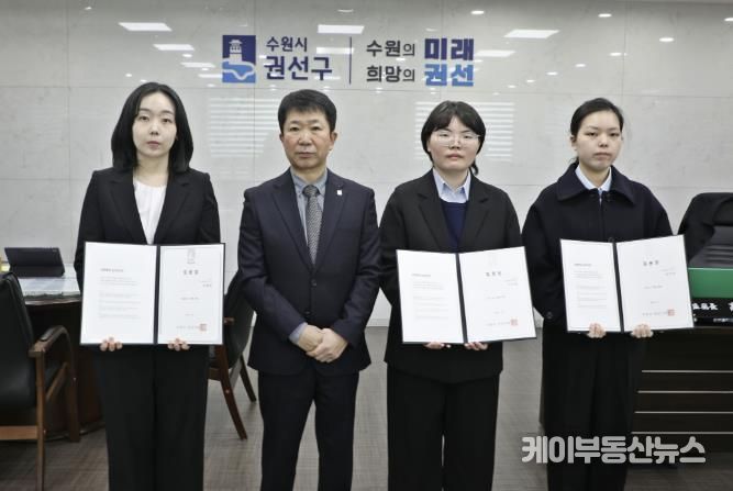 케이부동산뉴스 김교민 기자 | 수원시 권선구는 지난 5일, 권선구청 2층 집무실에서 신규 공직자 3명이 참석한 가운데 임용장 수여식을 개최했다.