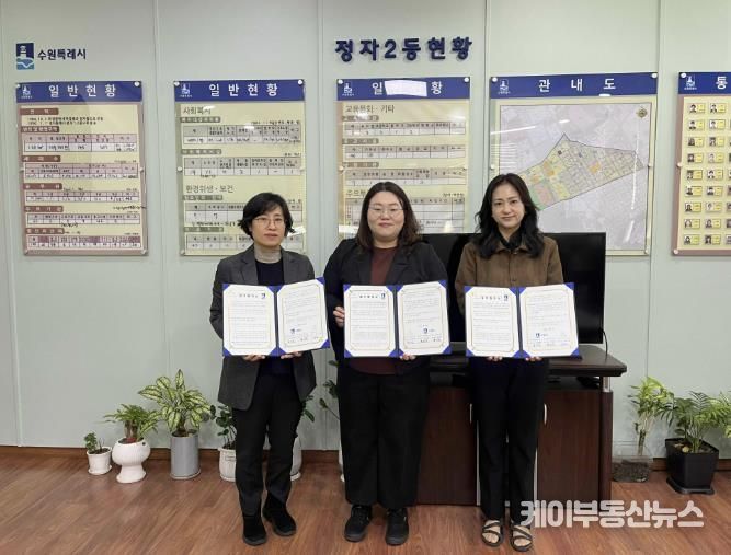 케이부동산뉴스 김교민 기자 | 수원시 장안구 정자2동 행정복지센터와 정자2동지역사회보장협의체는 지난 5일, 수원시 자살예방센터와 함께 ‘생명존중안심마을 조성을 위한 업무협약’을 체결했다.