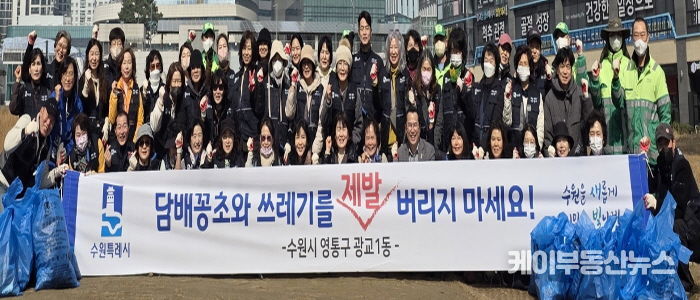 케이부동산뉴스 김교민 기자 | 영통구 광교1동 행정복지센터는 지난 3월 5일 통장협의회와 환경관리원 등 60여 명이 참여한 가운데 무단투기 지역을 중심으로 봄맞이 환경정비 활동을 실시했다.
