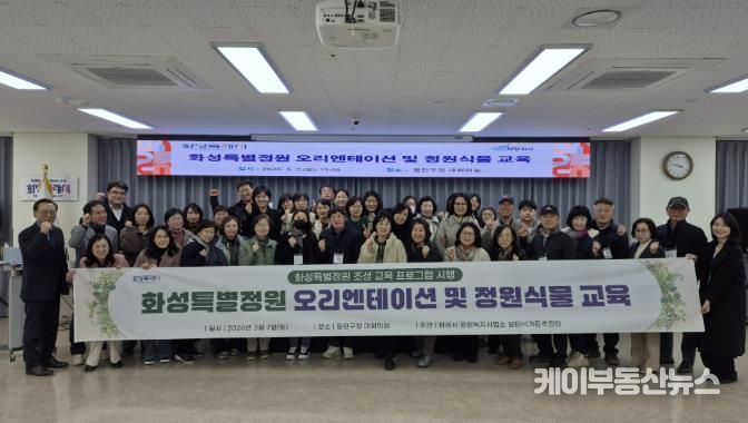 케이부동산뉴스 김교민 기자 | 화성특례시는 시민과 함께하는 ‘화성특별정원 조성’사업을 본격 추진하고, 이를 위한 정원 교육을 실시했다고 9일 밝혔다. 이번 사업은 단순한 녹지 조성을 넘어 시민이 직접 기획·설계·조성·관리까지 참여하는 생활밀착형 공공정원 모델을 구현하는 데 목적이 있다.