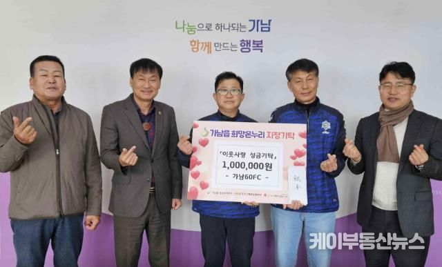 케이부동산뉴스 김교민 기자 | 여주시 가남읍의 대표적인 축구 동호회인 가남60FC가 올해도 변함없이 지역사회를 위한 따뜻한 나눔을 실천하며 주위를 훈훈하게 하고 있다.