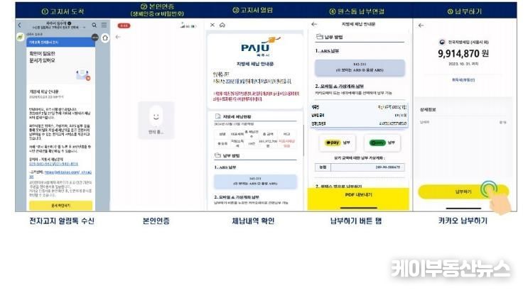 케이부동산뉴스 김교민 기자 | 파주시는 지방세 체납액 징수율을 제고하기 위해 도입한 '체납 안내 카카오 알림톡 모바일 전자고지 서비스'가 뚜렷한 성과를 거두고 있다.
