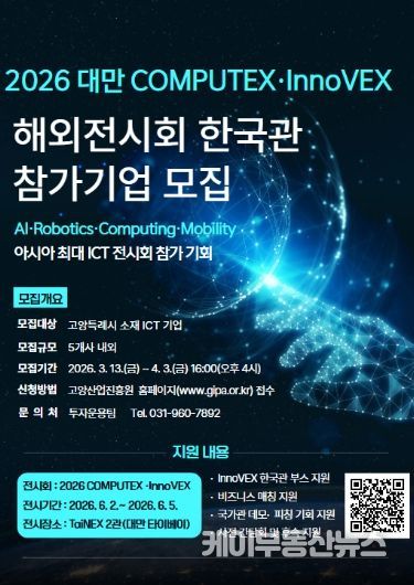 케이부동산뉴스 김교민 기자 | 고양산업진흥원이 ‘2026 대만 COMPUTEX‧InnoVEX ’참가 기업을 모집한다고 18일 밝혔다.