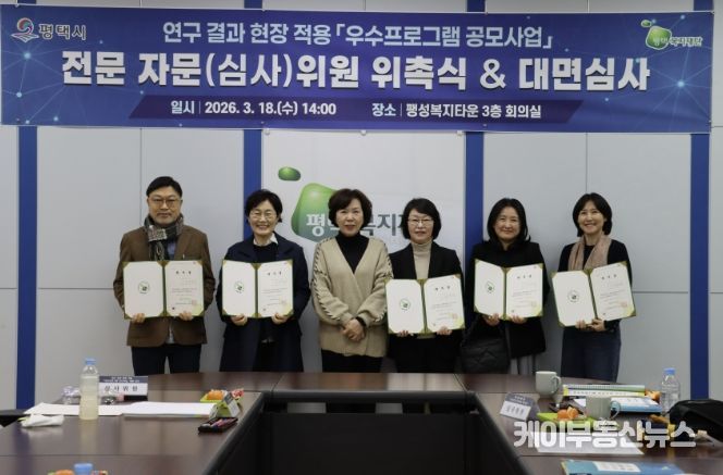 케이부동산뉴스 김교민 기자 | 평택복지재단은 2026년 3월 18일, 팽성복지타운에서 관내 사회복지 서비스의 질적 도약과 지역복지 강화를 위한녪년 연구 결과 현장 적용 우수프로그램 공모사업’심사위원 위촉식 및 대면 심사를 진행했다.