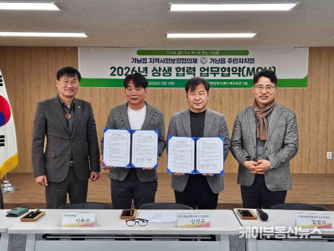 케이부동산뉴스 김교민 기자 | 가남읍 지역사회보장협의체와 주민자치회는 지난 19일 행정복지센터에서 지역 복지 증진과 주민 참여 활성화를 위한 업무협약(MOU)을 체결했다.