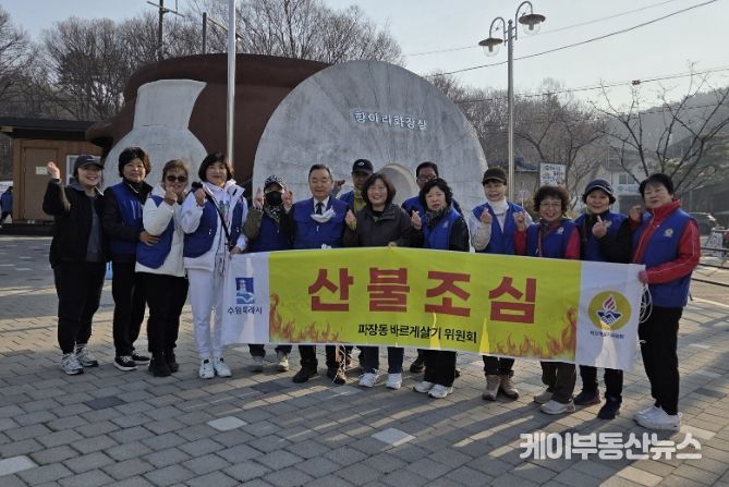 케이부동산뉴스 김교민 기자 | 수원시 장안구 파장동 바르게살기운동위원회가 지난 21일, 파장동 인근 등산로에서 지역 주민들을 대상으로 산불 예방의 중요성을 알리고 안전의식을 높이기 위한 산불방지 캠페인을 실시했다.