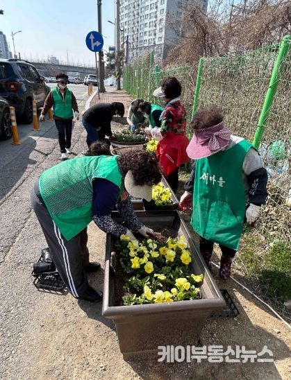 케이부동산뉴스 김교민 기자 | 평택시 신장2동 행정복지센터는 지난 23일 새마을부녀회 회원과 동 직원 등 30여 명이 참여한 가운데, 관내 주요 도로변 및 도시재생구역 일대에 봄꽃 심기 작업을 했다고 밝혔다.