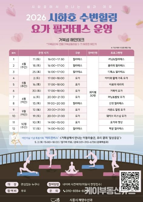 케이부동산뉴스 김교민 기자 | 시흥시는 시화호 수변의 자연경관을 활용해 시민들에게 일상의 여유와 휴식을 제공하는 ‘시화호 수변 힐링 프로그램’을 오는 4월 11일부터 10월 17일까지 운영한다.