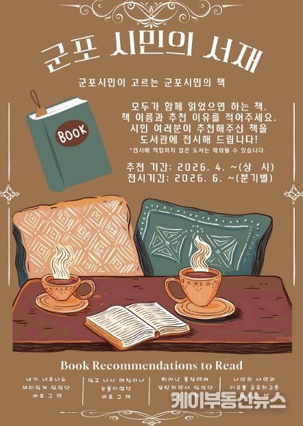 케이부동산뉴스 김교민 기자 | 군포시 산본도서관에서 4월부터 군포 시민이 직접 골라주는 군포 시민의 서재 추천 도서 모집을 시작한다고 밝혔다.
