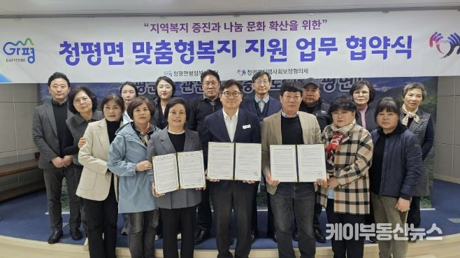 케이부동산뉴스 김교민 기자 | 가평군 청평면 지역사회보장협의체(지사협)는 지난 24일 특화사업인 ‘정성가득 희망찬 반찬지원 사업’ 추진을 위해 종운식품과 업무협약을 체결했다고 밝혔다.