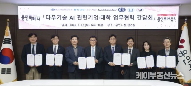 케이부동산뉴스 김교민 기자 | 용인특례시는 26일 ㈜다우기술, 지역내 대학, 병원, 인공지능산업 관련 기업 관계자들과 ‘지역 AI 및 벤처기업 육성을 위한 사무공간 무상제공 수요처 간담회’를 개최했다.