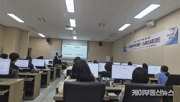 교육은 에듀마이스터 김영진 대표를 초청해 개인 컴퓨터 실습 중심의 밀착형 강의로 운영됐다. 주요 내용은 ‘나노바나나’를 활용한 맞춤형 사진 제작과 ‘망고보드’를 활용한 동영상 제작 실습 등으로 구성돼 실무 적용 가능성을 높였다.