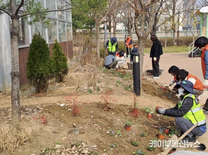 케이부동산뉴스 김교민 기자 | 성큼 다가온 봄의 기운이 마을의 생기를 깨우는 가운데, 마을의 쉼터를 가꾸기 위해 주민들이 직접 팔을 걷어 붙였다.