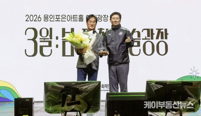케이부동산뉴스 김교민 기자 | 용인문화재단 김혁수 대표이사가 지난 3월 27일 용인포은아트홀 야외광장에서 열린 ‘제철 예술광장 '3월:봄'’ 행사 현장에서 이상일 용인특례시장으로부터 공로패를 받았다. 이번 공로패는 재임 기간 동안 용인문화재단 운영 전반에서 축적된 성과와 공적을 종합적으로 인정한 데 따른 것이다.