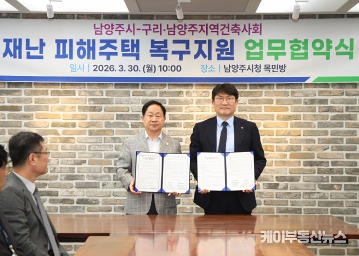케이부동산뉴스 김교민 기자 | 남양주시는 30일 구리‧남양주지역건축사회와 재난으로 주택 피해를 입은 시민의 신속한 주거 안정을 지원하기 위한 ‘재난 피해 주택 신축 지원 업무협약’을 체결했다고 밝혔다.